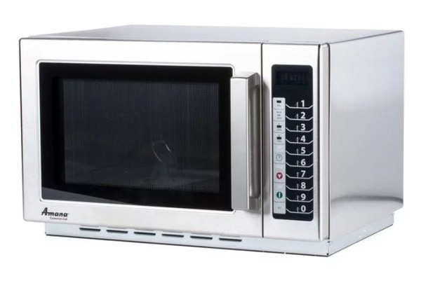 Amana® Commercial Microwave Oven, 1000 watts, 1.2 cu. ft. capacity, medium volume, 4-stage cooking, (5) power levels, (100) memory settings, braille touch pads, non-removable air filter, side hinged door with tempered glass, accommodates 14" plate, stainless steel interior & exterior, 120v/60/1-ph, 13.0 amps, 15 MCA, 1550 watts (total), NEMA 5-15P, cETLus, ETL-Sanitation