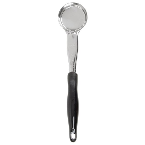 Spoodle®, 1-piece heavy duty, solid round bowl, handle coded black, 2 ounce (59.1ML), 18/8 304 stainless steel, ergonomic design high temperature textured nylon handle heat resistant to 450°F (232°C), built-in stopper notch, capacity stamped on shaft, 12-11/16" overall L, 2-1/2"bowl diameter, limited warr, NSF, 12/case